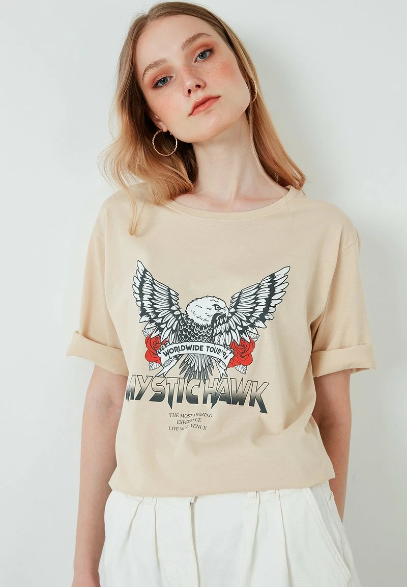 LELA LOOSE FIT – T-Shirt Print – Stone Colored