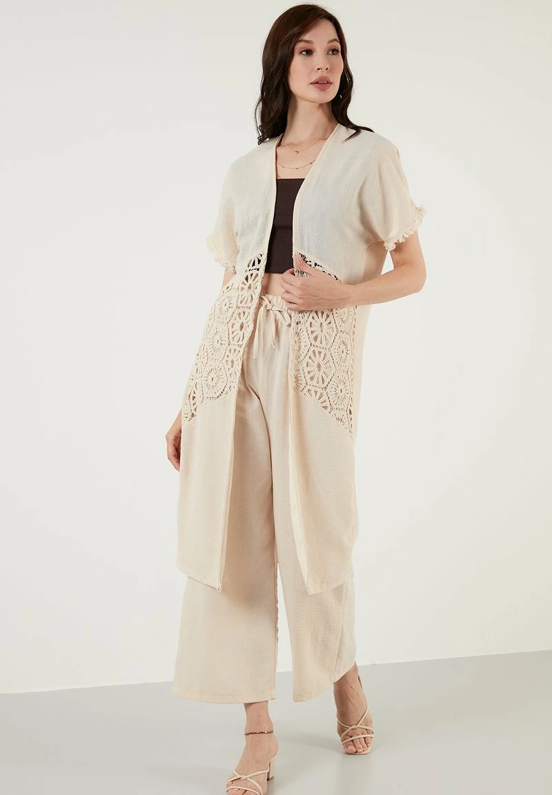 | Details | Häkeleinsätze, elastischer Bund, Fransen |